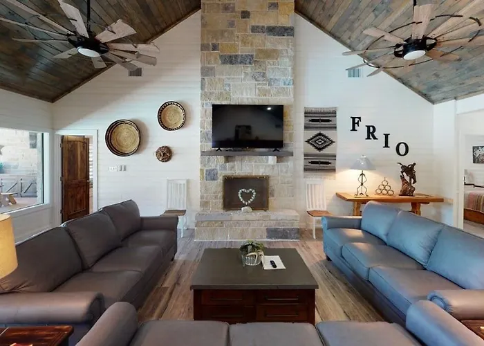 Welcome to Heartstone Lodge Frio Premier Rental Homes, a serene retreat nestled in the scenic landscapes of Concan, Texas. Offering a perfect blend of modern elegance and rustic charm, this exquisite destination is ideal for families, friends, and couples looking to escape into nature while enjoying the comforts of luxury. Surrounded by the captivating beauty of the Frio River, Heartstone Lodge is the epitome of tranquility, ensuring a memorable stay for every guest.